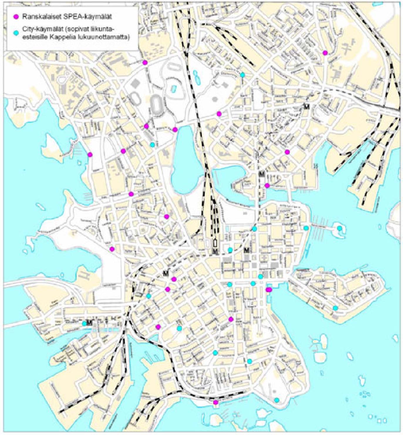 Kaikkia em. toimipaikkoja on suhteellisen vähän Helsingin liikekeskustan alueella, joten niitä ei voida pitää yhtä merkittävinä kriteerinä määriteltäessä alueen esteettömyysvaatimuksia kuin pääosin asumiseen painottuneilla alueilla. Liikekeskustan kaikki julkiset ja yksityiset palvelut sekä alueen suuret jalankulkijamäärät ja julkisen liikenteen terminaalien sijoittuminen alueelle vaikuttavat kokonaisuutena enemmän liikekeskustan esteettömyysvaatimuksiin kuin minkään yksittäisen palvelupisteen sijainti.