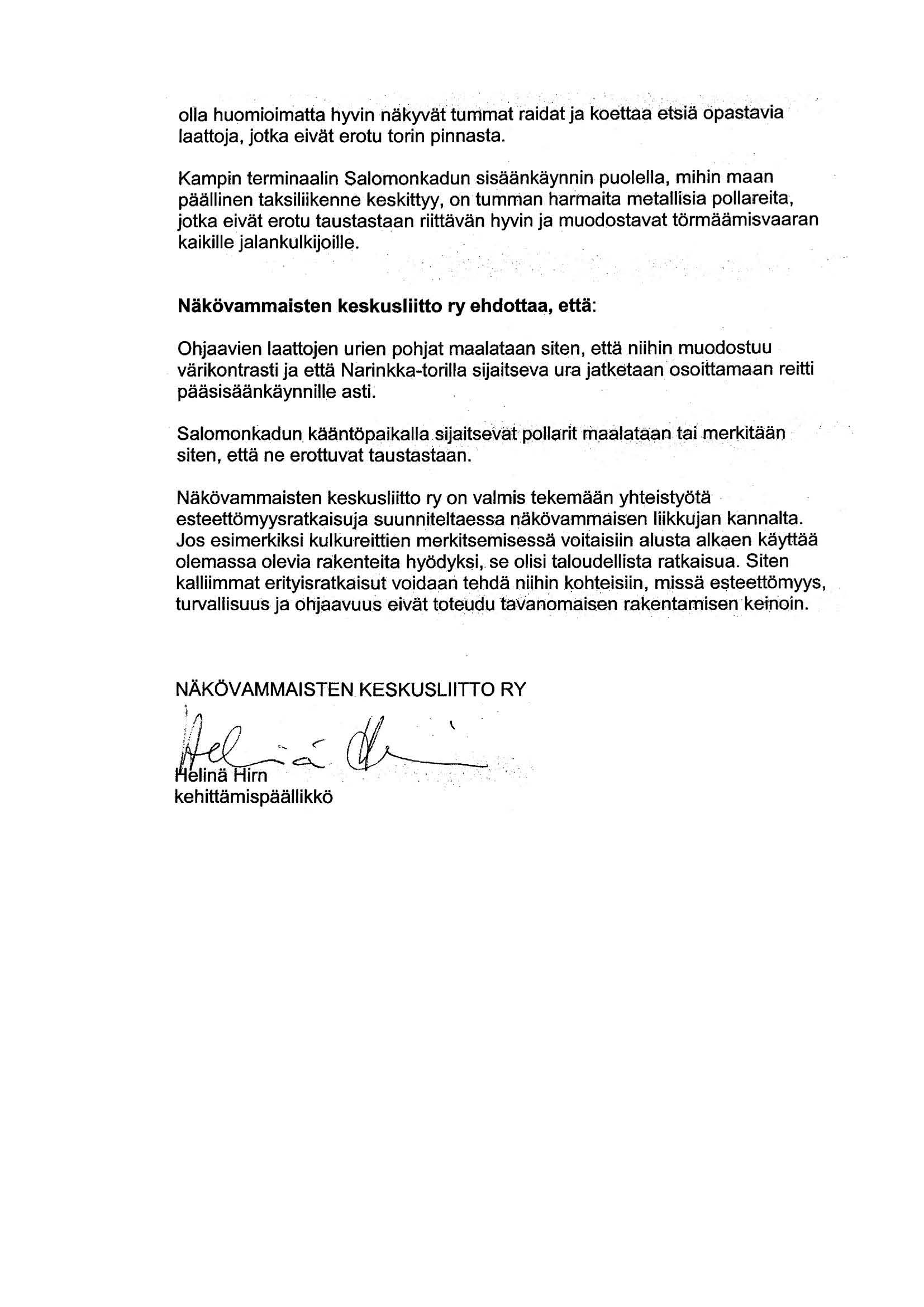 Liite 7. Näkövammaisten Keskusliitto ry:n lausunto, Kamppi Center
