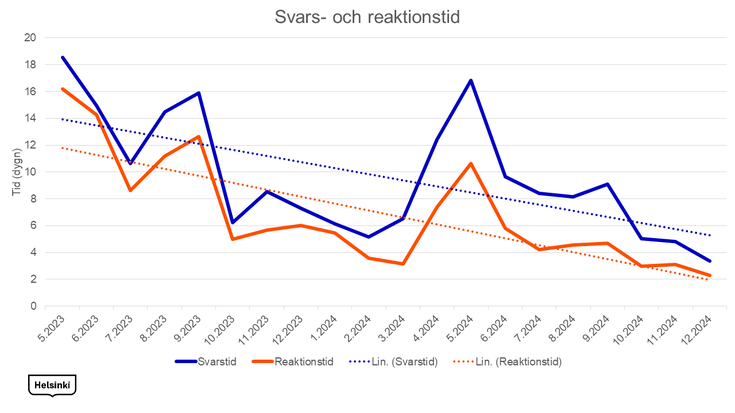 Vi läser all respons vi får. Vi strävar efter att svara inom en vecka på den respons som önskar svar. Direkt efter att den nya responstjänsten togs i bruk tog det längre tid att svara, men när arbetsmetoderna stabiliserades har vi lyckats förkorta svarstiden från över två veckor till cirka en vecka. År 2024 var den genomsnittliga svarstiden på respons 8,29 dagar.