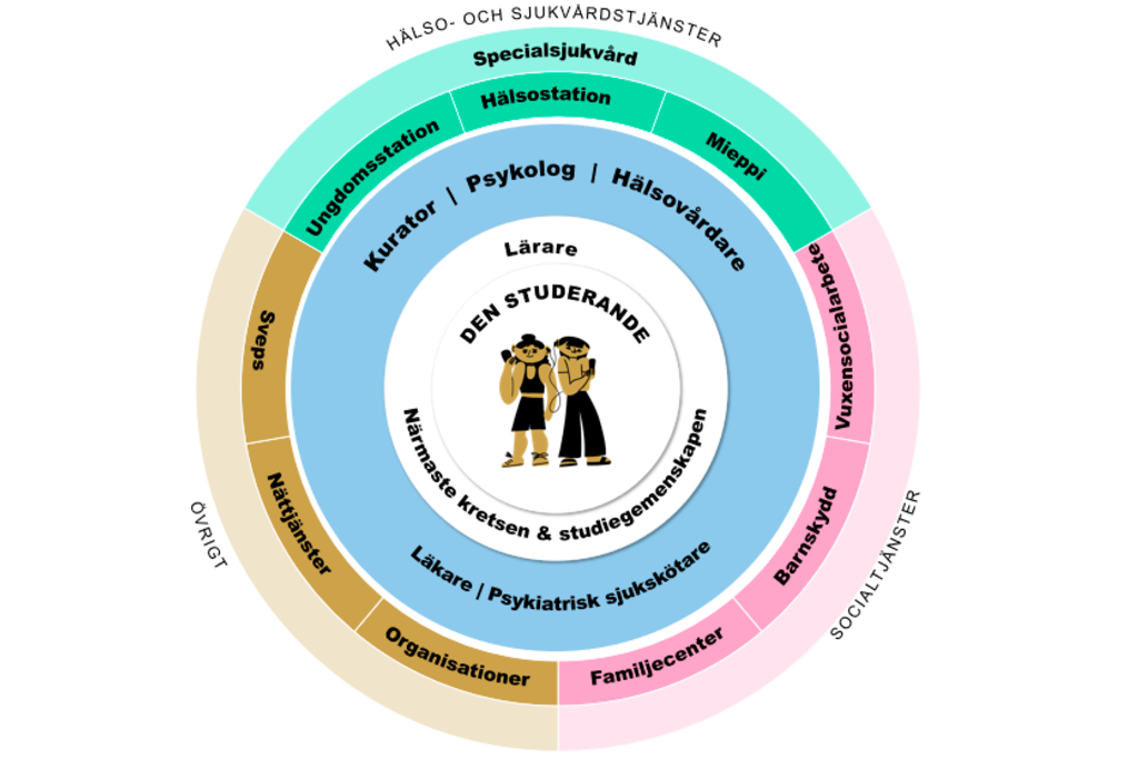 Studerandevårdens mångprofessionella nätverk erbjuder stöd för lärande, hjälper med utmaningar i vardagen och problem med hälsan. Studerandevården hjälper även studerande med ångest eller som mår dåligt. Studerande kan få hjälp med akuta situationer eller mer planerat och långsiktigt stöd – beroende på vad behovet är.