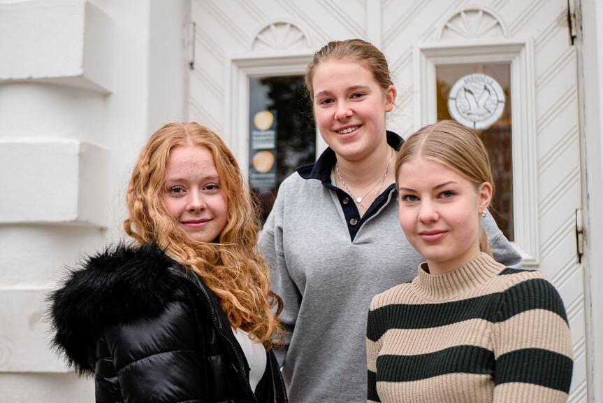 Freja Grönqvist, Emilia Sundström och Celina Siggberg är vänner också utanför skolan men vet att det kan finnas skolkompisar som känner sig ensamma.