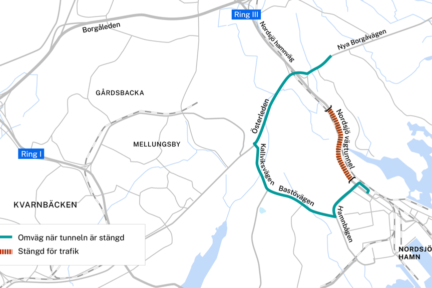 Förbättringen av omledningsvägen är en del av projektet för att förnya de tekniska systemen i Nordsjö vägtunnel, som är planerat att inledas 2025. Arbetet förutsätter att tunneln stängs för en längre tid och då är omledningsvägen den primära omvägen runt tunneln.