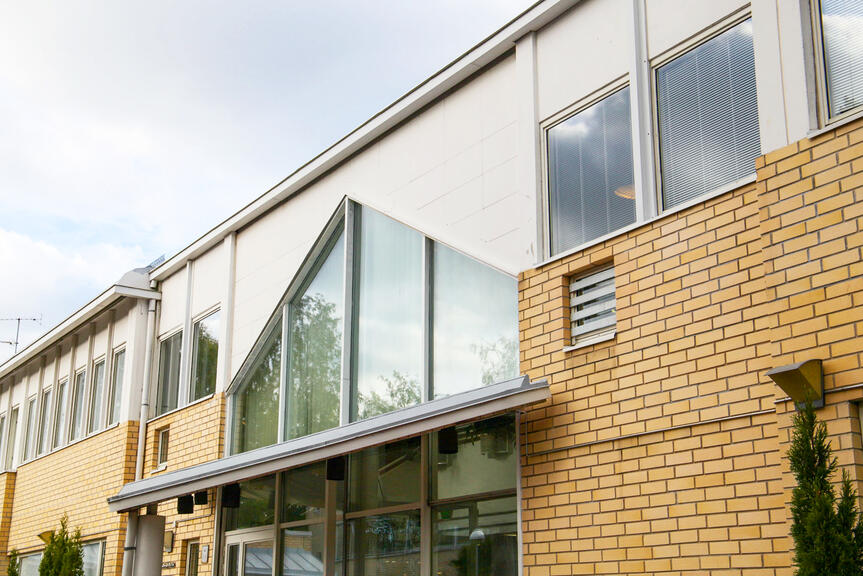 - Dörrarna vid ingången är lätta att urskilja och glasdörrarna har kontrastmarkeringar. Utanför dörren finns tillräckligt med fritt utrymme för att röra sig t.ex. med rullstol. Dörren öppnas automatiskt med en rörelsedetektor.